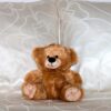 He has light fluffy fur, comes with a bow, and is well loved by both children and adults alike!